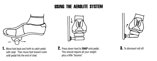 The cleat is designed of DuPont Zytel® ST nylon and is formed to wrap around the pedal with a maximum of 1320 pounds of tension to keep you attached to the pedal until you are ready to get out. When you want out, just lift the inside edge of your foot and you are out. The cleat can be mounted to most popular shoes, including the SPD floating mounts. Custom mounting is also available from AeroLite.